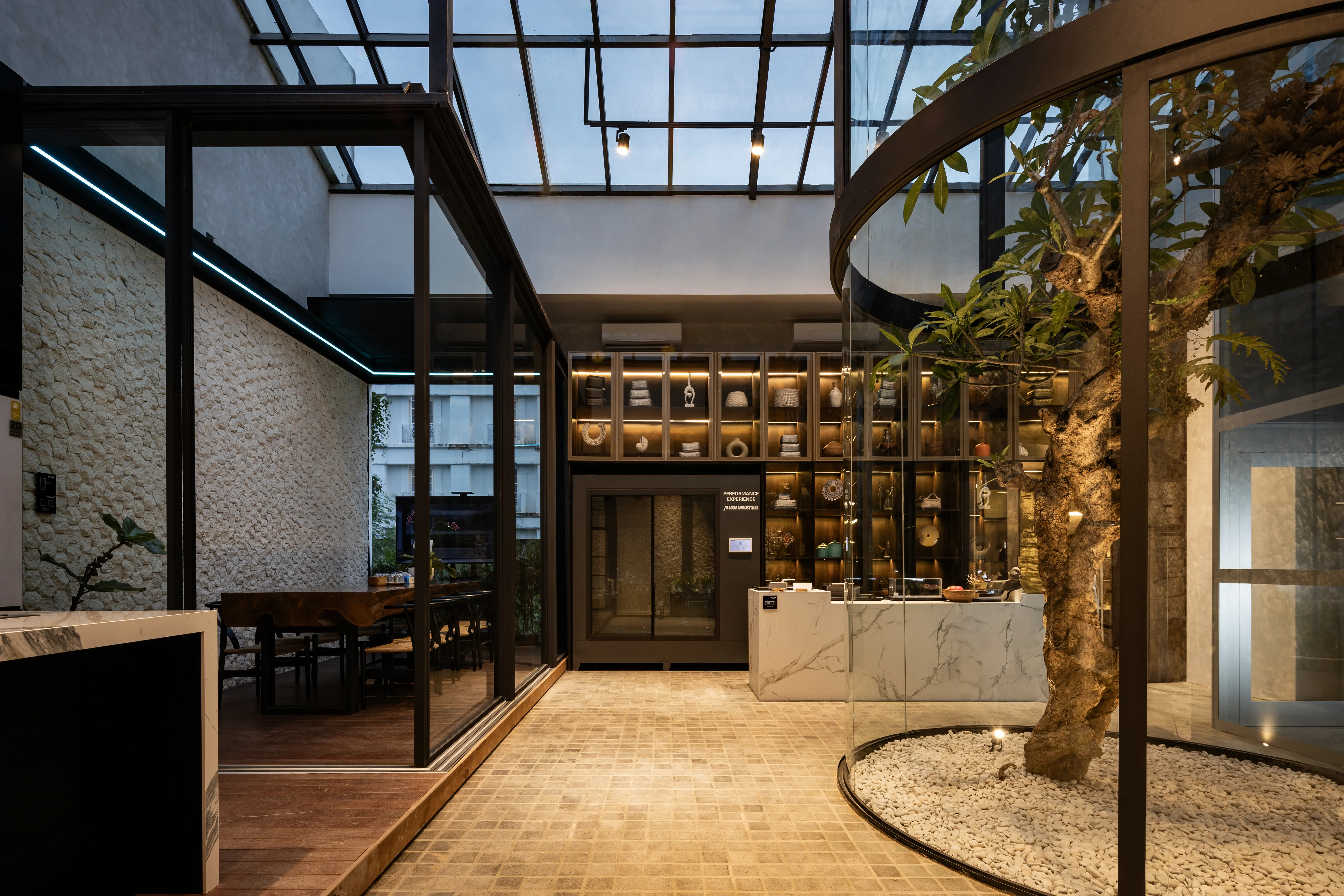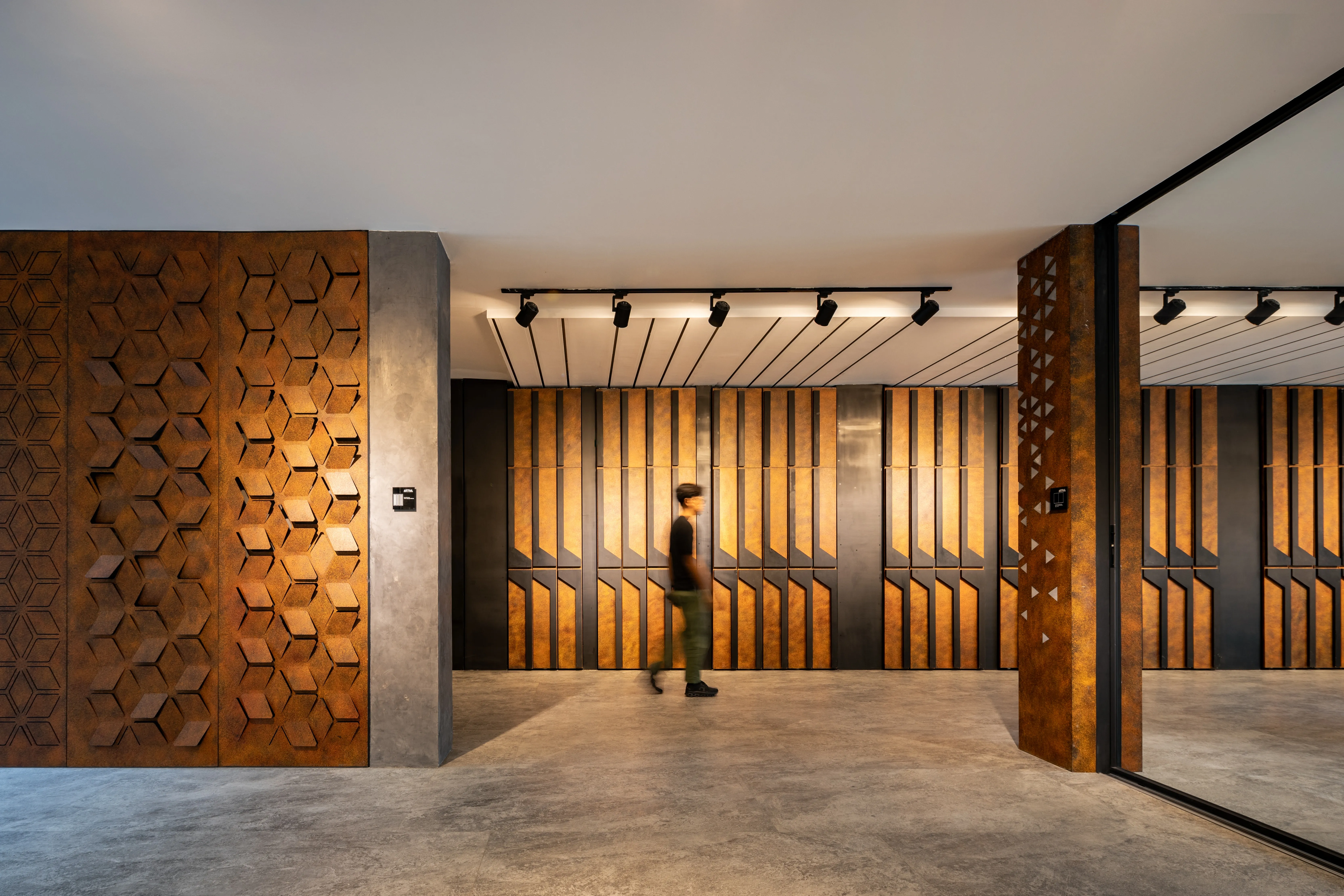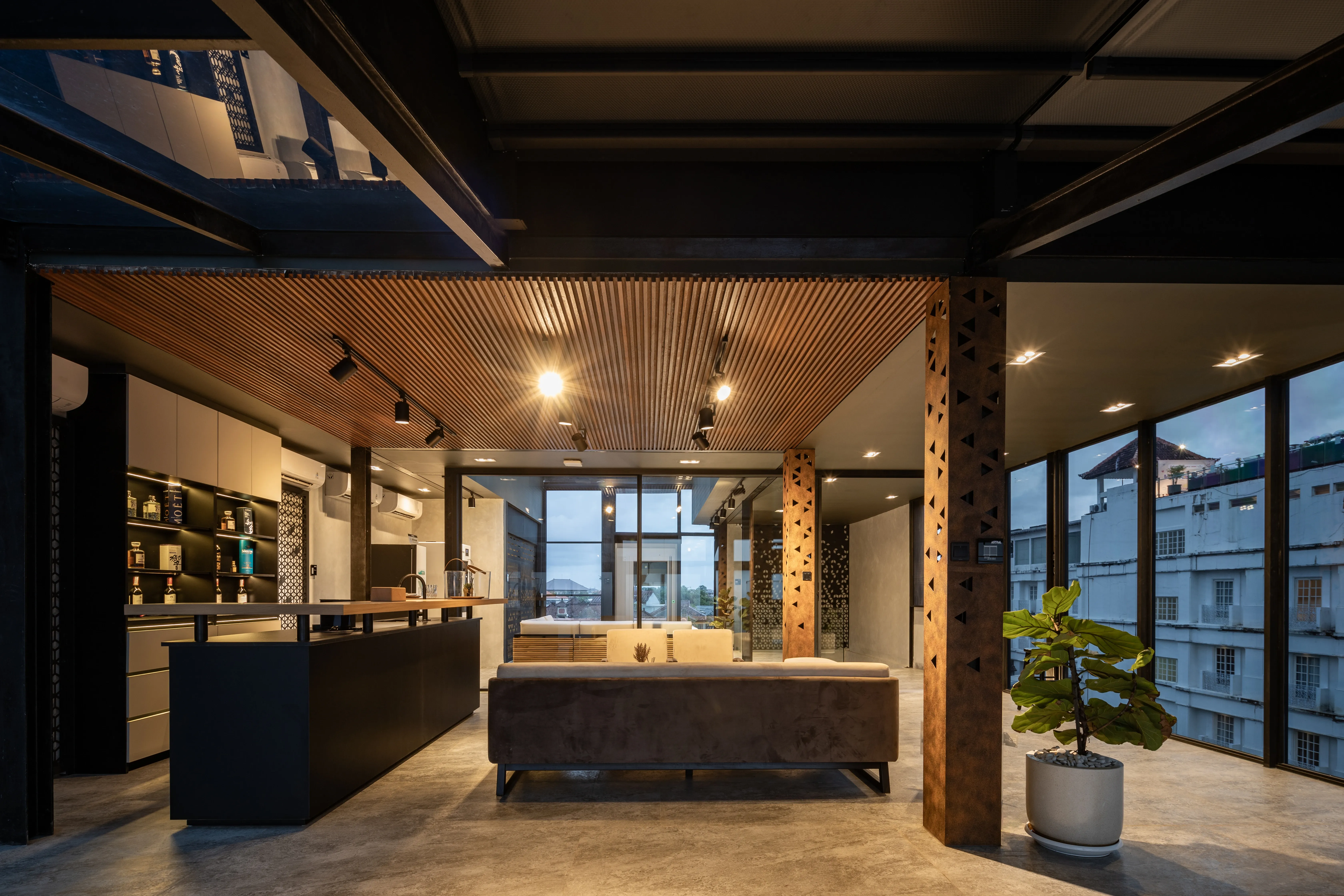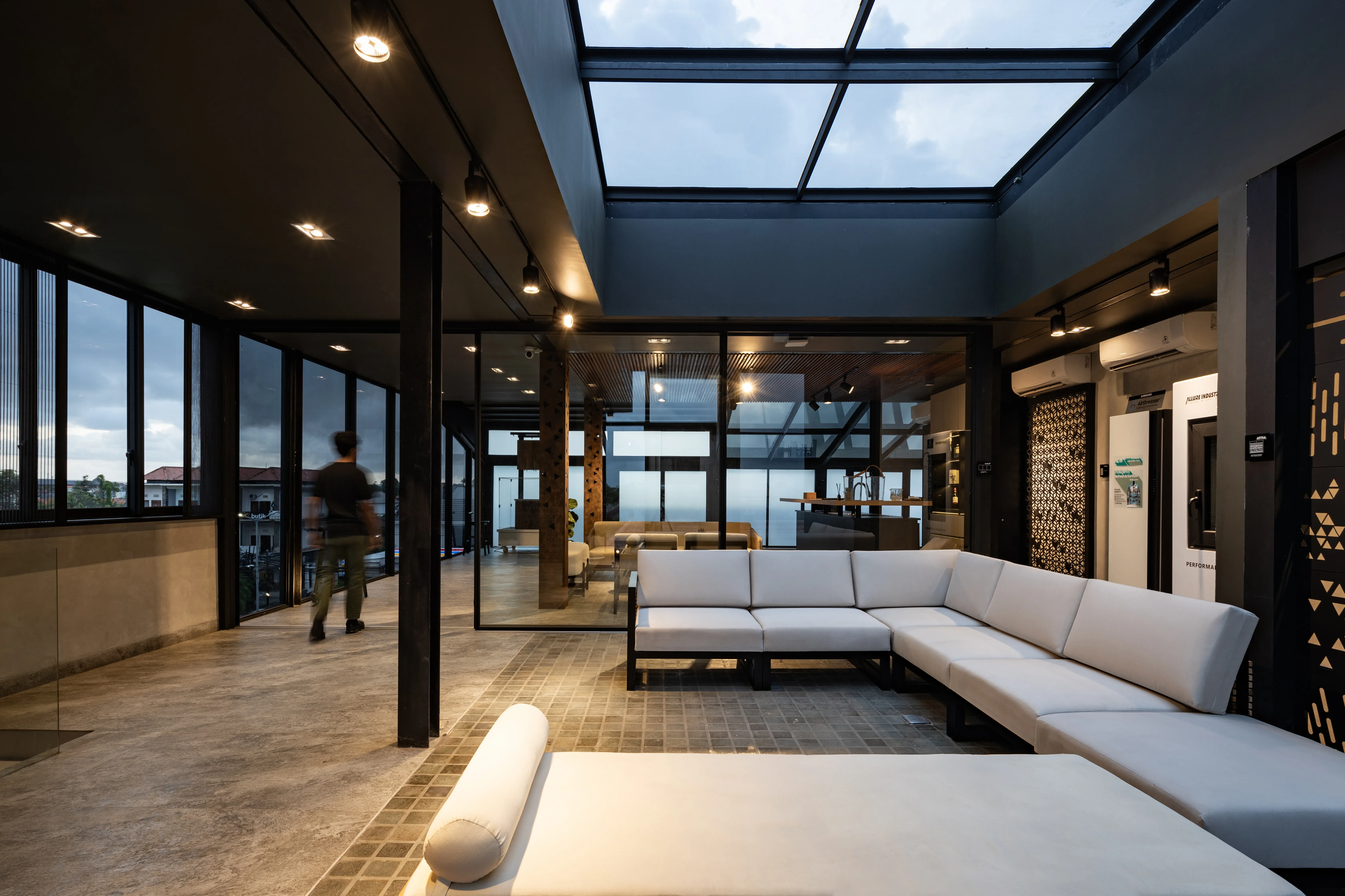 The Allure Industries Headquarters in Bali stands as an epitome of architectural innovation, encapsulating the essence of their aluminium expertise. At the heart of this design is a generative concept, conceived from the notion of an aluminium waterfall merged seamlessly with lush greenery, symbolising the harmonious union of technology and nature. The facade is a testament to this vision, resembling a cascading aluminium curtain juxtaposed with verdant vegetation, a homage to their aluminium profile production. This symbolic fusion is an aesthetic marvel and a representation of the company's ethos. The architectural challenge encompassed the integration of multifaceted technologies within a 4-story structure, aligning with the company's dedication to showcasing its advancements. Upon entering, guests are greeted by a spectacular glass roof and a sliding curve double high door, an architectural marvel inviting curiosity and setting the stage for the futuristic journey within. The rooftop astutely features an openable glass roof, offering a glimpse into the limitless potential and possibilities that lie within the intersection of technology, nature, and architectural mastery.