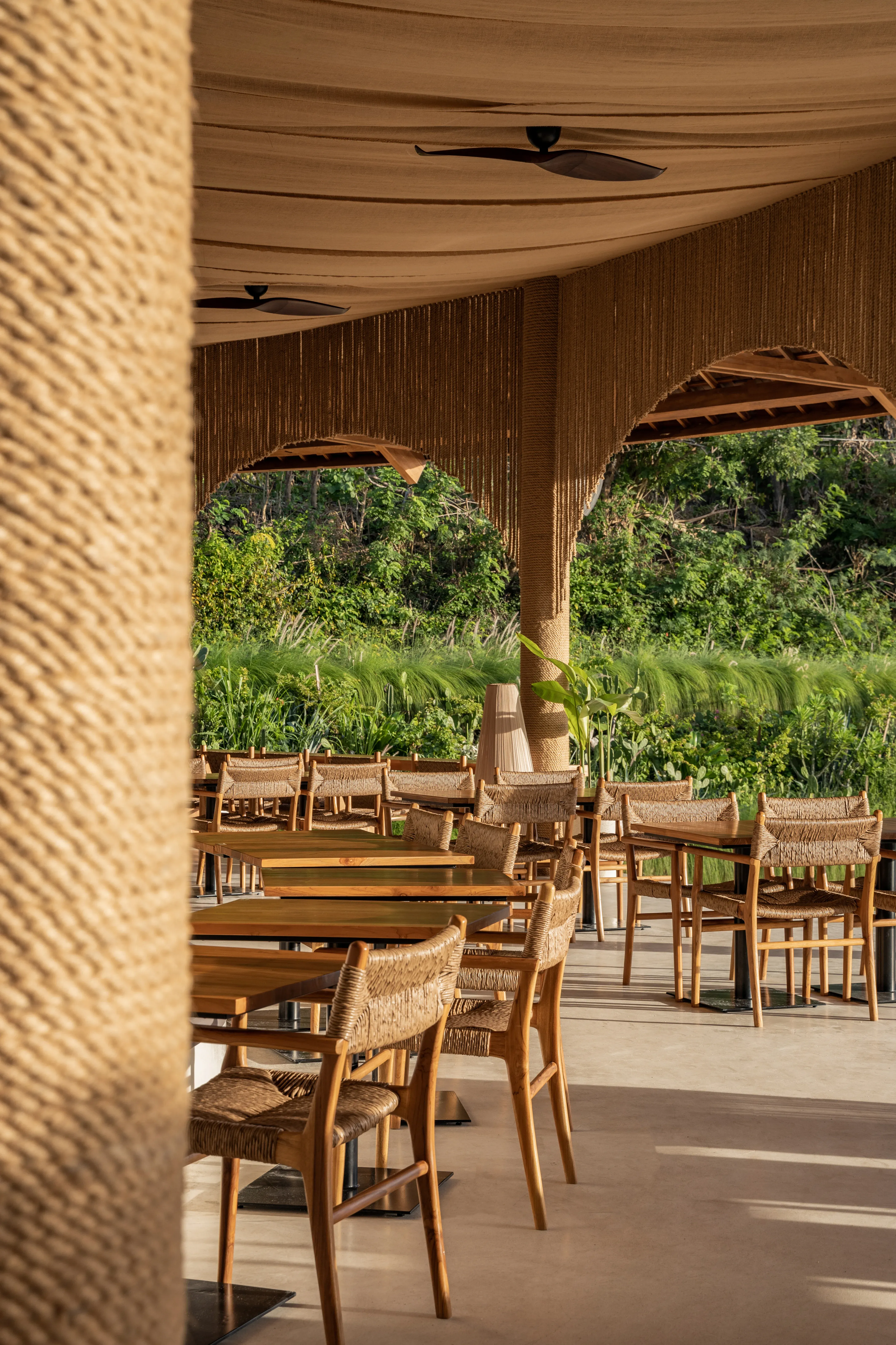 The Cactus Beach Club is an intimate getaway located in Nusa Penida that draws inspiration from the island’s laid-back atmosphere and Mediterranean culture. The beach club’s design features a “rope-inspired” aesthetic, incorporating elements of traditional fishing nets used by the island’s fishermen in the furniture, ceiling, and sunshade. The club is constructed with locally sourced materials and designed to pay homage to Nusa Penida’s local culture, providing guests with a visually unique and cozy escape that captures the tropical island vibe.