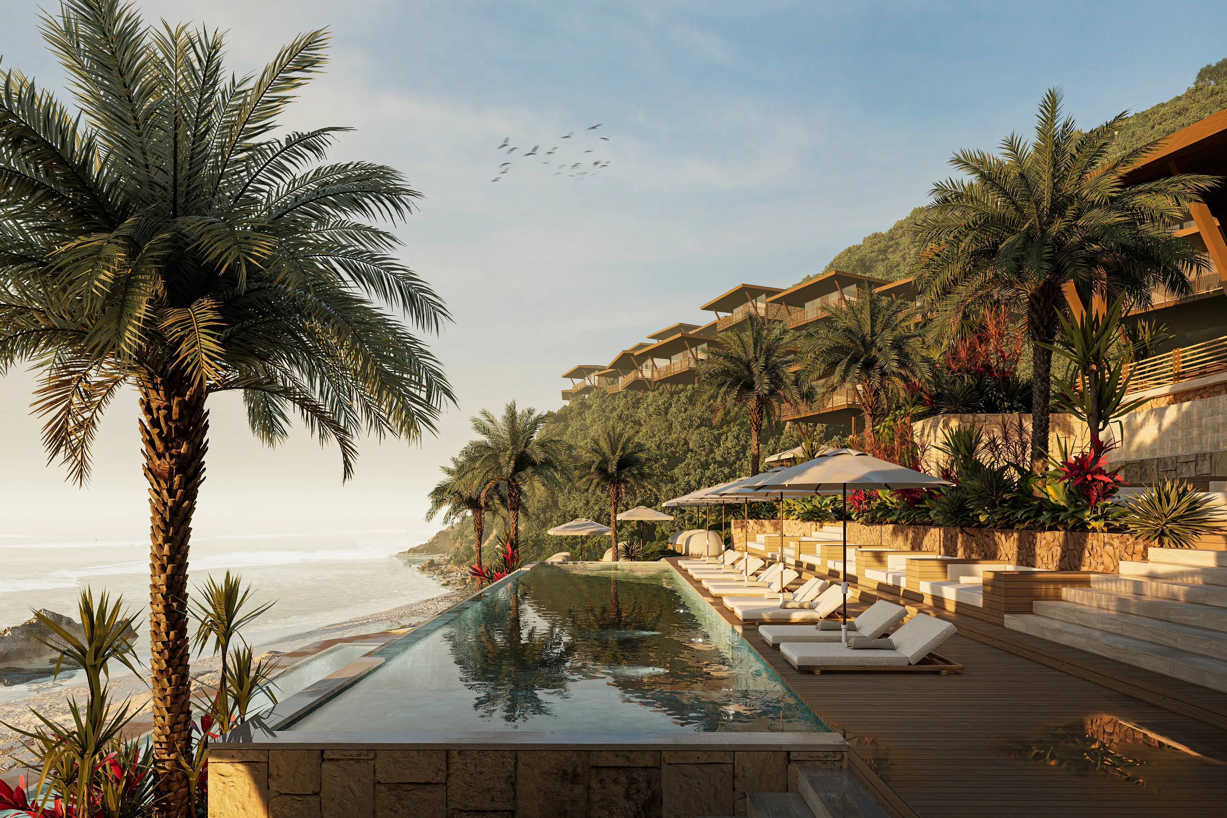 Samara Beach Hotel is a nature-integrated luxury retreat nestled on the slopes of Samara Hills, overlooking the pristine Pantai Torok beach in Lombok. Inspired by traditional fishing villages, the design blends tropical modern architecture with cultural authenticity and environmental stewardship. The hotel features 31 hillside rooms with panoramic ocean views, private terraces, and eco-conscious construction using locally sourced wood, stone, and glulam structures. Curved Indonesian-style pitched roofs and cantilevered forms evoke both tradition and modern elegance. Key facilities include a three-tier infinity pool cascading down the hillside, a beachside restaurant serving local and international cuisine, a welcoming open-air lobby, and a dedicated water sports zone. All areas are designed to maximize natural ventilation and minimize environmental impact. With its emphasis on sustainability, cultural immersion, and refined comfort, Samara Beach Hotel offers a uniquely enriching experience for environmentally conscious travelers seeking both serenity and sophistication.