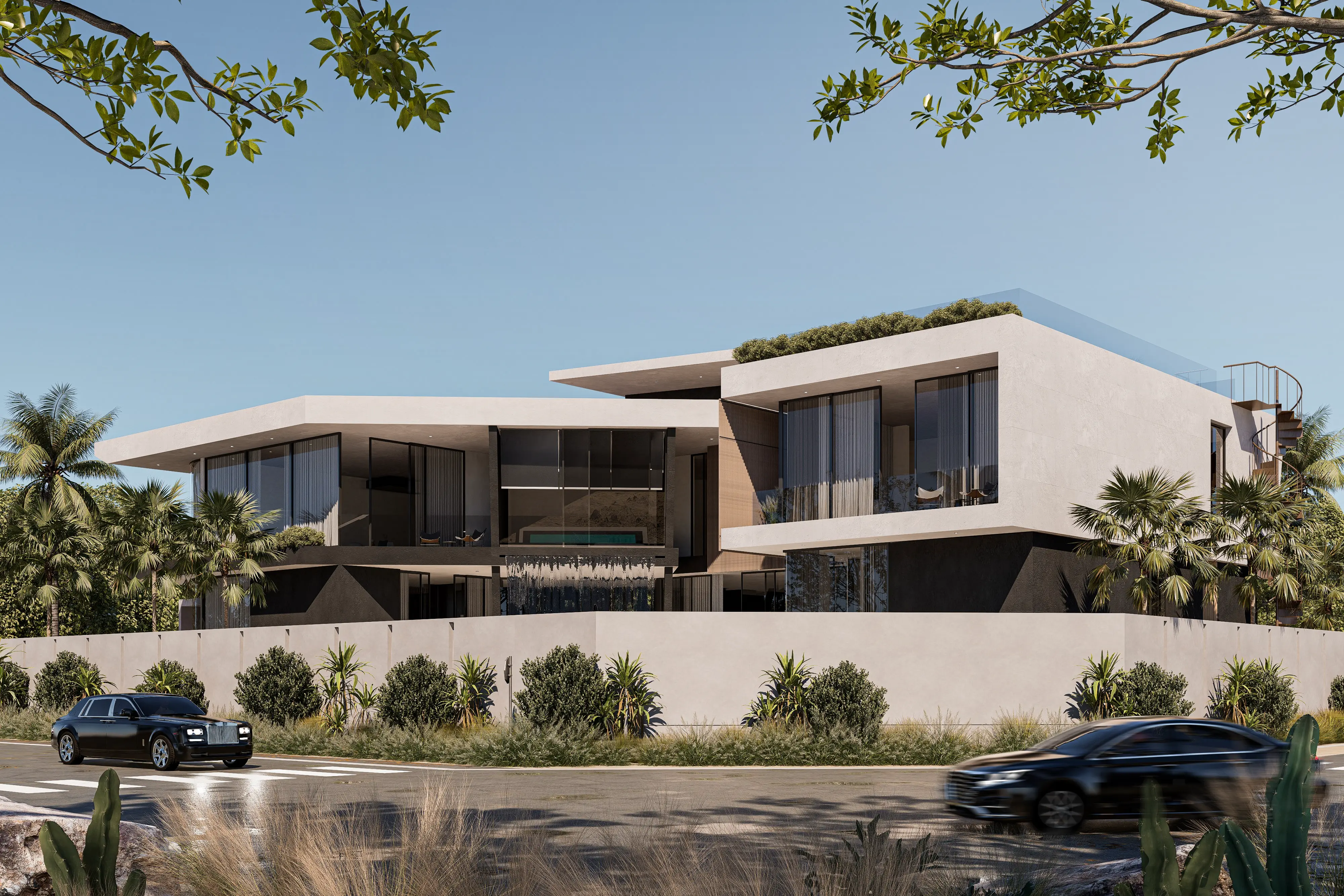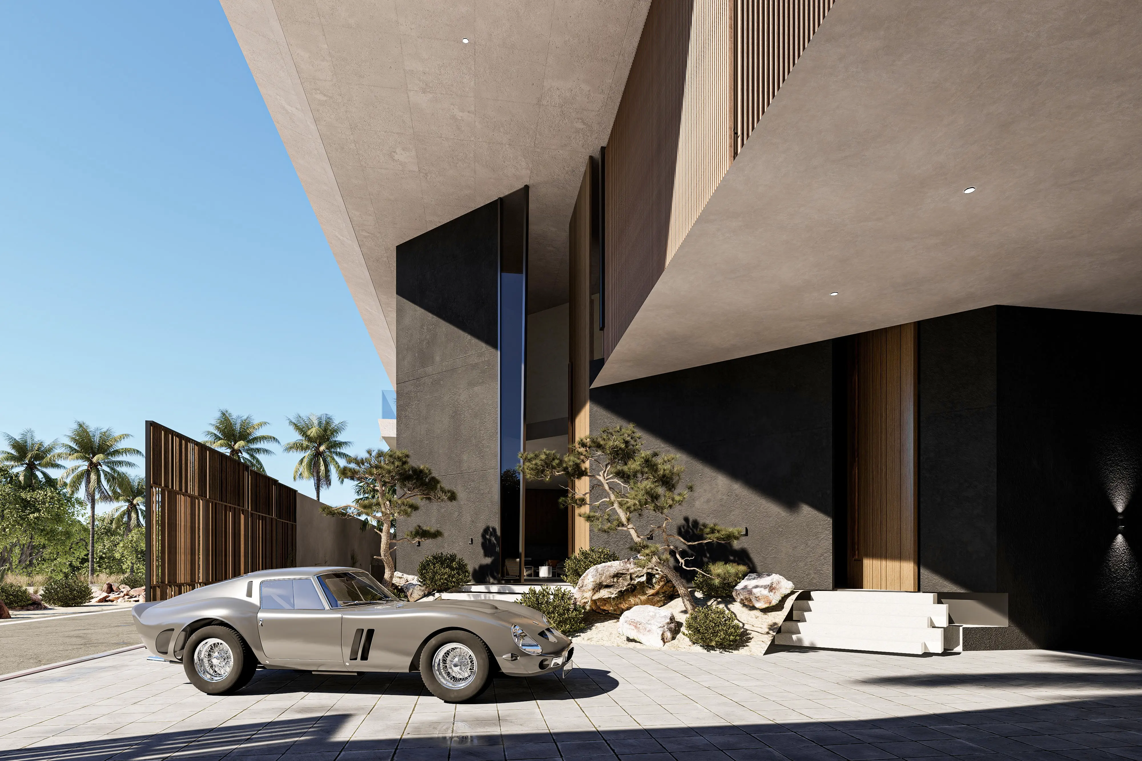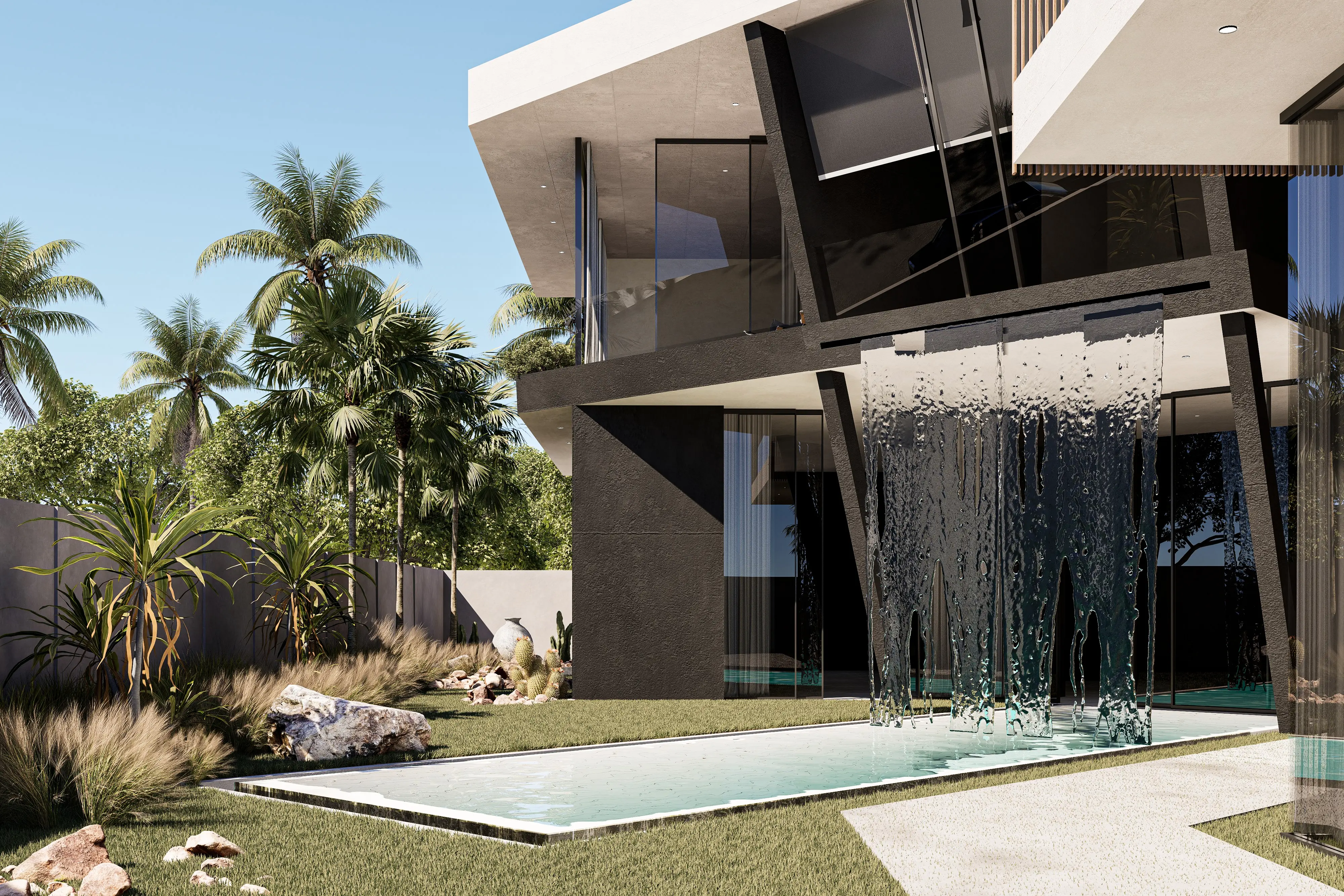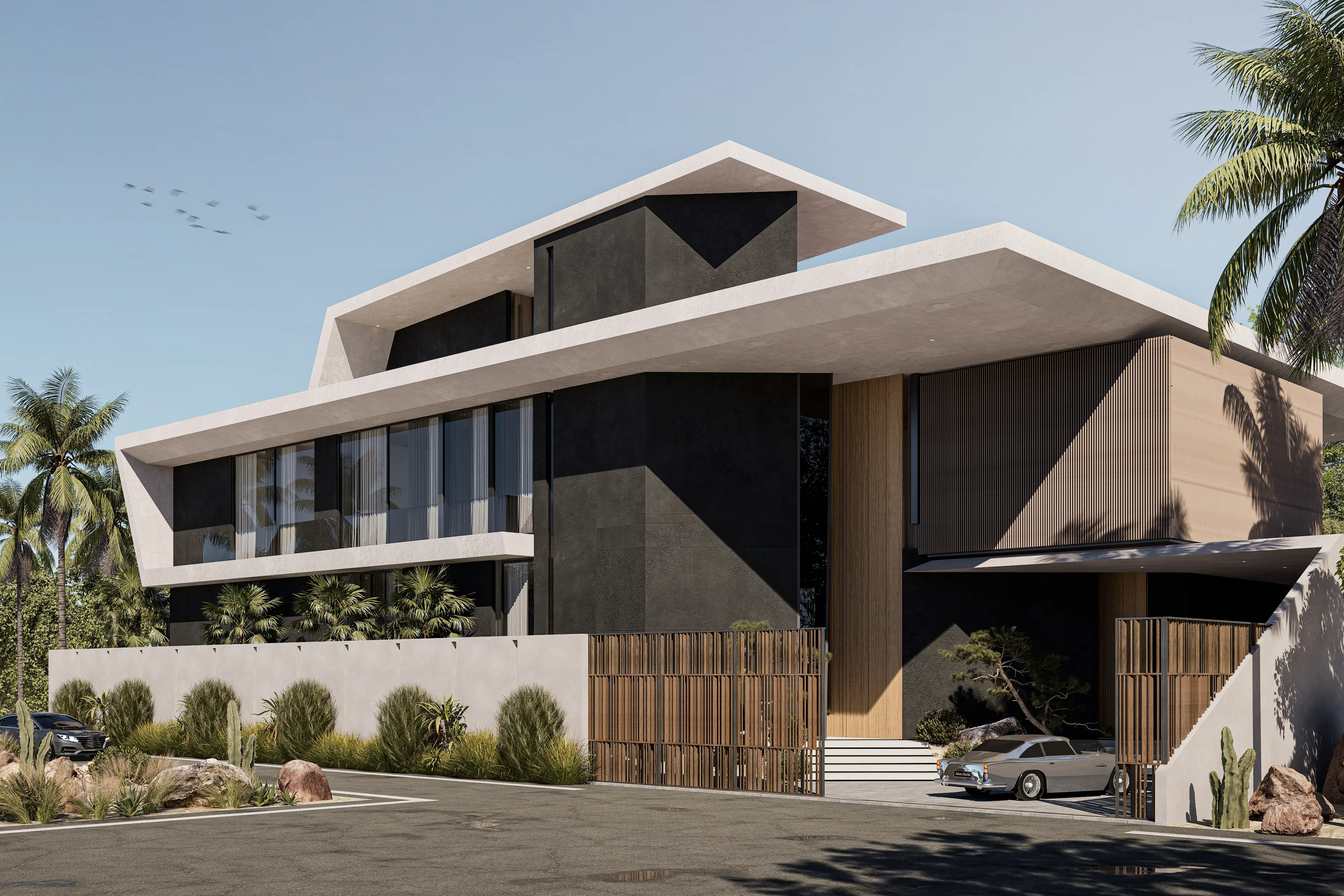 Introducing Villa FA, a landmark project in the heart of Dubai, where our architectural vision seamlessly marries tropical modernism with the dynamic urban environment of the city. As our inaugural venture in the UAE, this grand private residence has been meticulously designed to infuse the warmth and tropical charm of Bali into the heart of Dubai. Villa FA is a testament to contemporary design, where modernity is intertwined with the comfort of a tropical oasis. It combines clean lines with daring cantilevers, resulting in double-height spaces that promote optimal cross ventilation and a play of light and shadow. The outdoor spaces of Villa FA are adorned with sandstone cladding, a design element that echoes the fluid contours of the Dubai desert. The intention here is to capture the essence of the wind-swept desert landscape, where natural forces shape both sand and stone. Villa FA serves as a unique and elegant blend of two distinct worlds, creating a living experience that is both sophisticated and comfortably connected to the mesmerizing desert surroundings of Dubai.